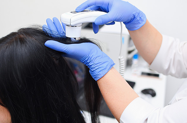 In the first step, we conduct an extensive evaluation of your skin, hair, and scalp, deploying advanced diagnostic tools. Our seasoned dermatologists and trichologists will also review your family history, medical history, and lifestyle patterns as part of the diagnosis. The process even involves identifying the underlying factors that are responsible for the hair and skin disorders. For this, our experts may require your blood and scalp samples.