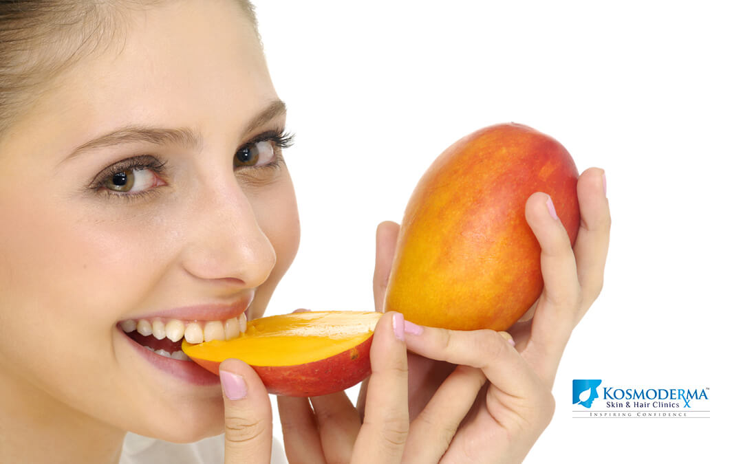 • Deficiency of vitamin A causes dull skin, open pores, acne as well as horny eruptions on the arms, elbows and knees. Vitamin A present in Mango is a vital nutrient for maintaining healthy skin and complexion.